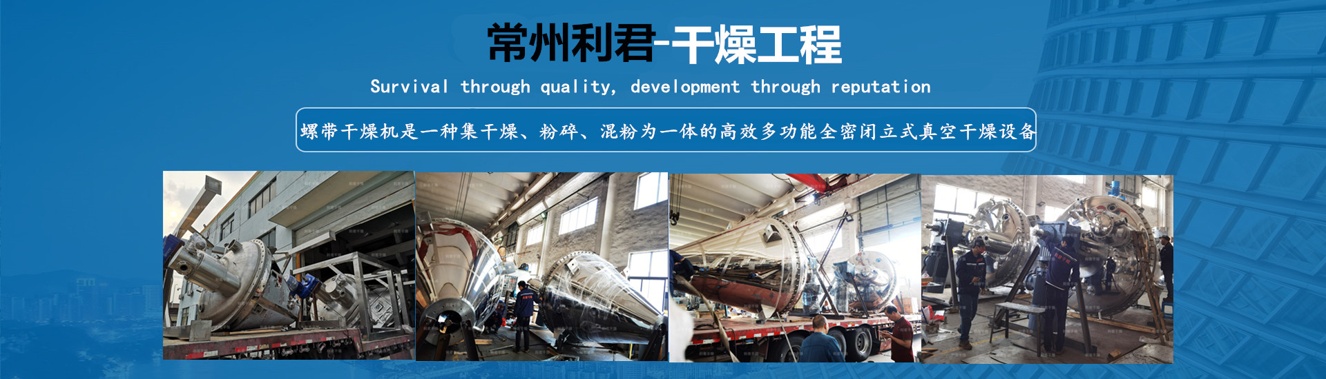 以質量求生存,以信譽求發(fā)展,已擁有干燥、制粒、混合、粉碎、除塵、篩分、干法、濕法、脫硫、換熱、濃縮、反應、儲存、蒸餾等多種系列上百個規(guī)格